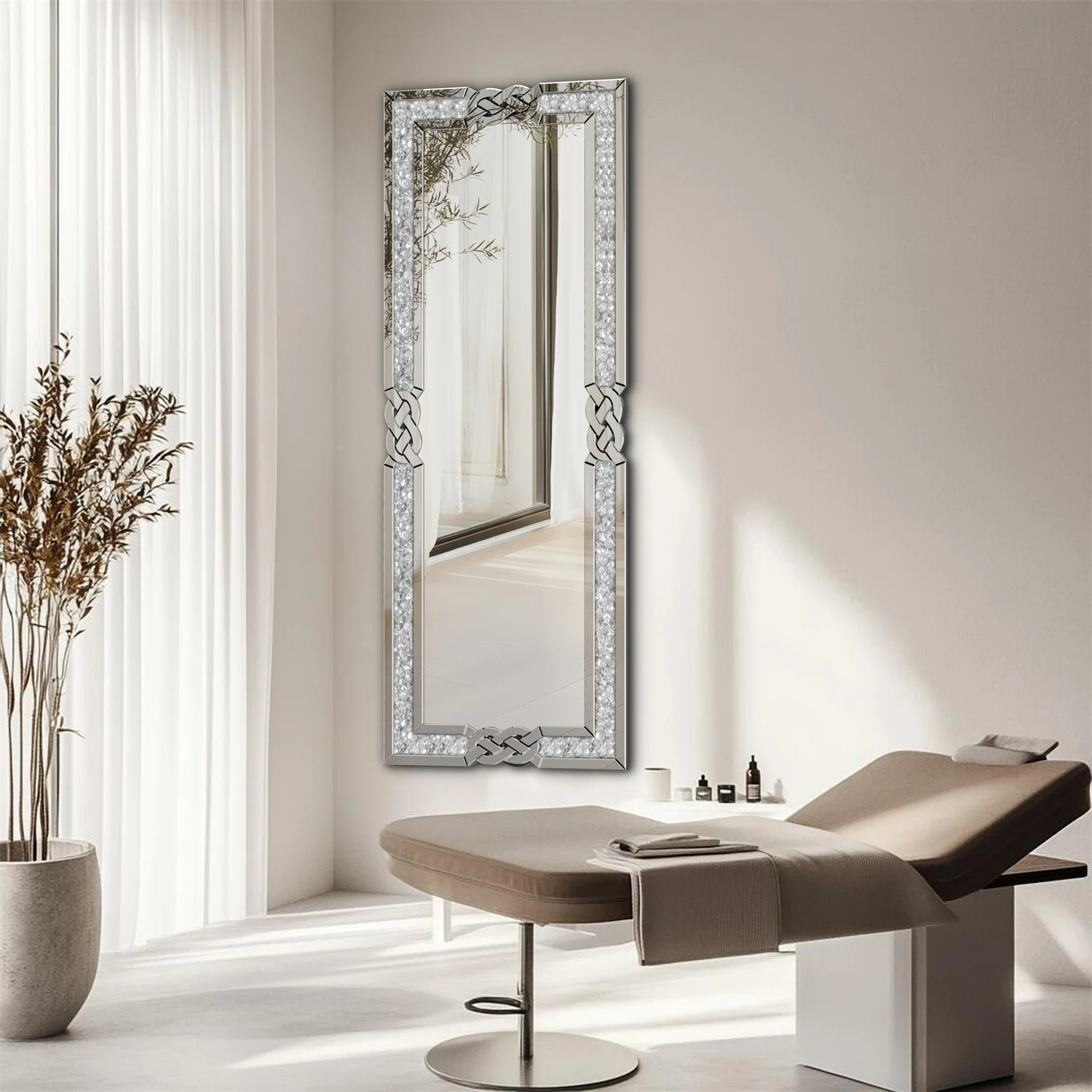 160cm Tall Crushed Diamond Full Length Mirror Silver Glass Full Body Length Mirror Standing/ Wall Bedroom Dressing Mirror