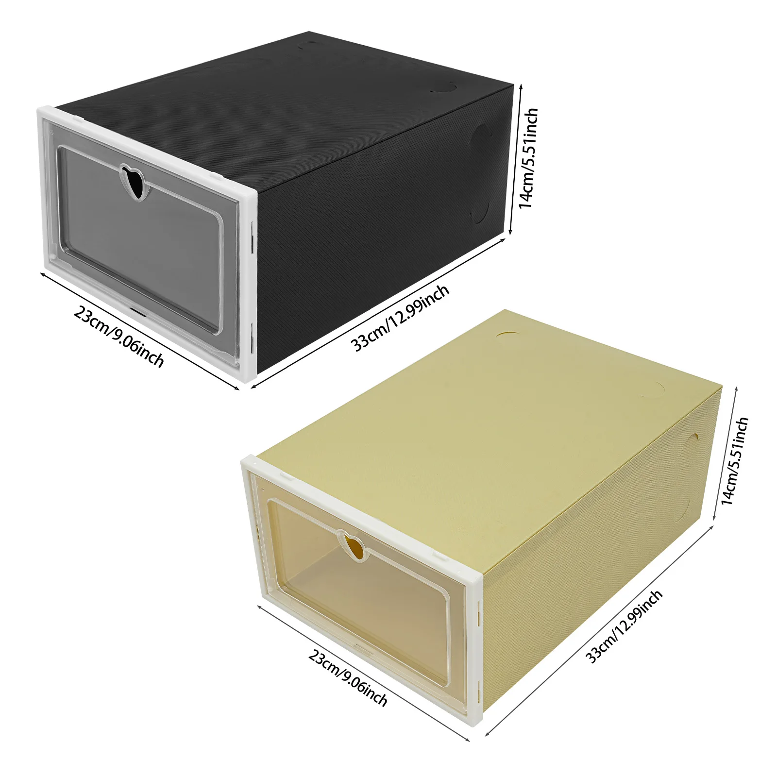 Clear Flip Lid: It keeps dust from entering so that the items inside will remain clean. The clear design allows you to see the shoes inside at a glance so that you can quickly find the pair of shoes you want to wear. The hole in the lid allows you to open the shoe box conveniently.