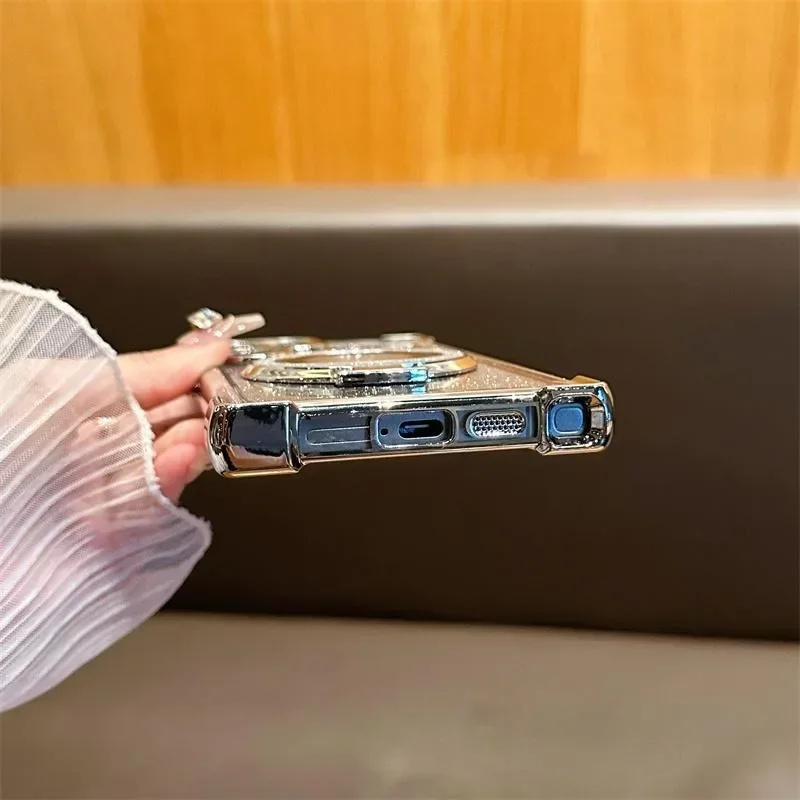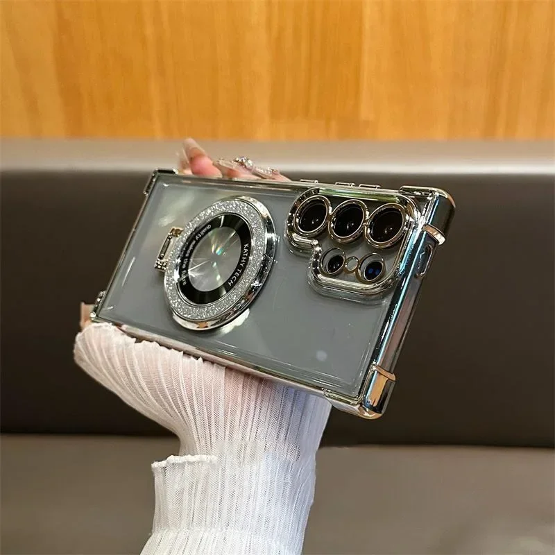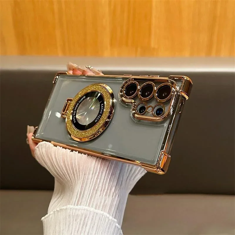 Luxury Magnetic Plating Stand Shockproof Glitter Case for Samsung Galaxy S25 Edge S24 Ultra S23 S22 Plus S21 S20 FE Clear Cover