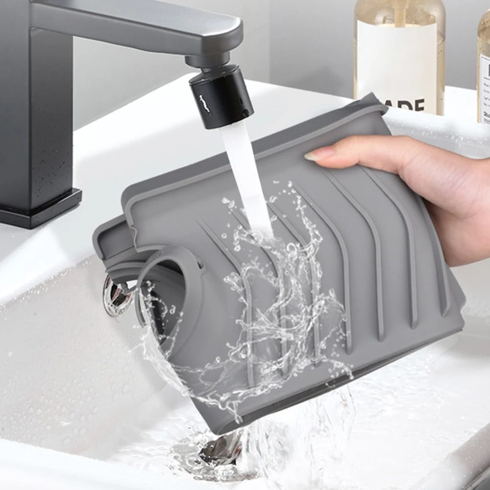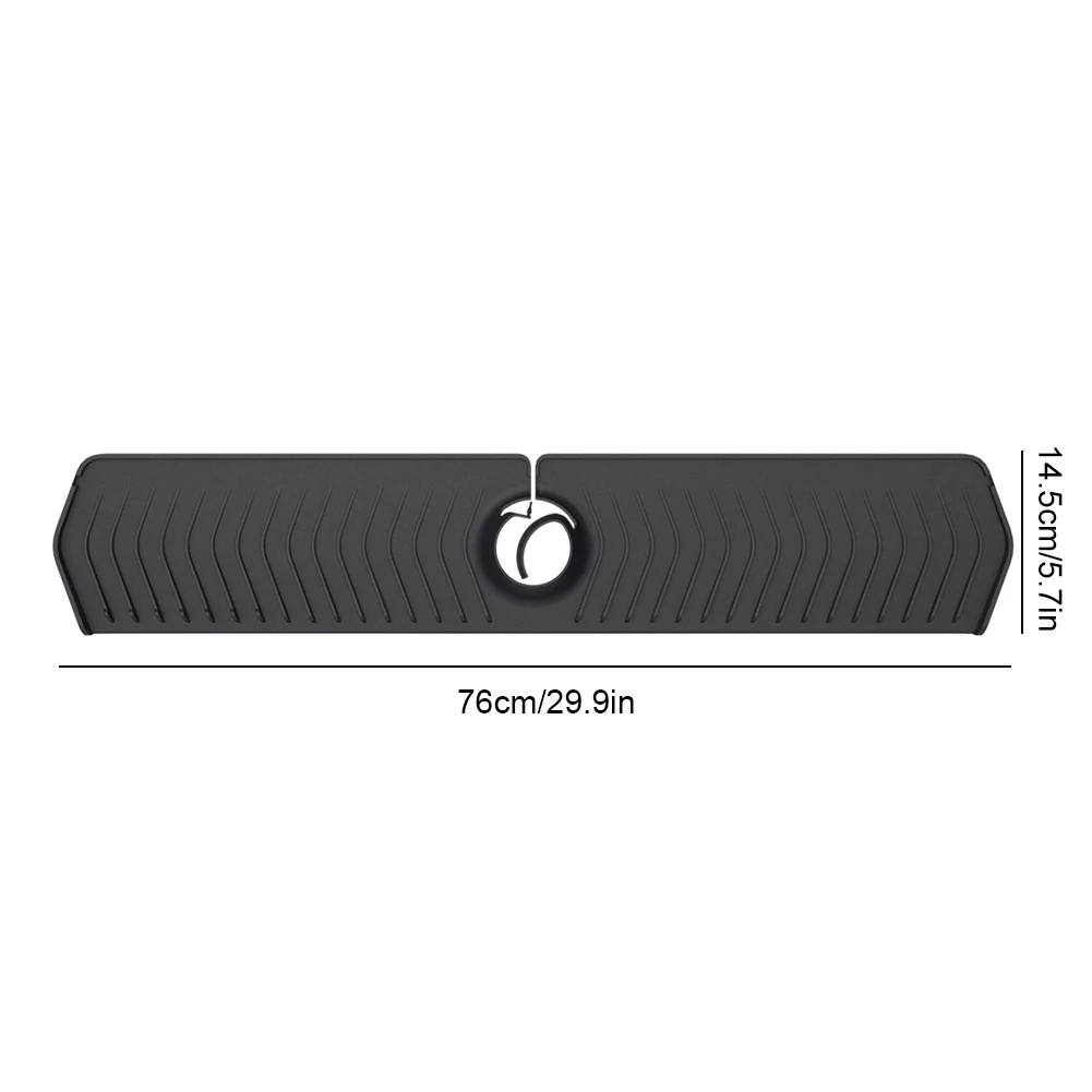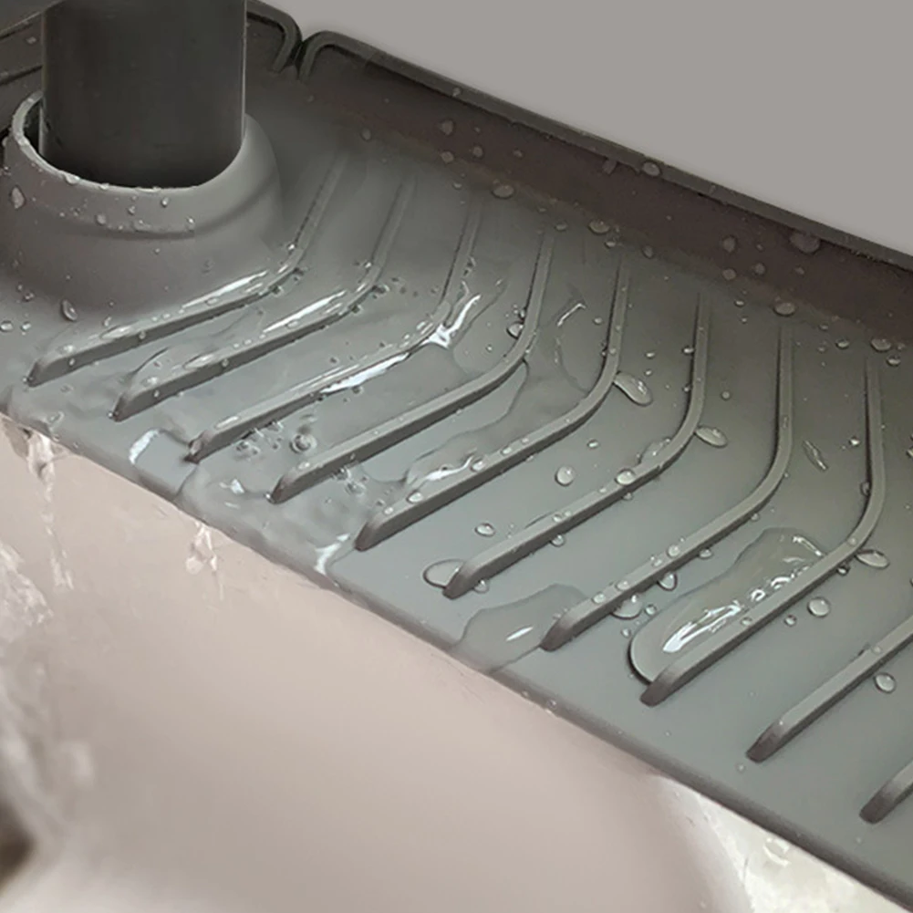 Silicone Faucet Handle Drip Catcher Tray Easy To Install Kitchen Sink Faucet Splash Guard Fast Drainage for Kitchen Counter Bathroom for Faucet Feature: 1. Premium Food-Grade Silicone: Our kitchen sink splash mat is made from high-quality food-grade silicone, ensuring safe and Clean use in your kitchen. Experience peace of mind knowing that the material used is free from harmful substances and is suitable for contact with food. 2. Efficient Drainage Design: Designed specifically for drainage purposes, our faucet handle drip catcher tray prevents water from pooling on the mat or countertop. With this innovative design, you no longer have to worry about stagnant water causing a mess. Keep your sink area clean and dry effortlessly. 3. Reusable and Long-lasting: Unlike fabric mats on the market, our sink splash guard is reusable and built to last. Simply install it on your sink countertop, and it will provide reliable protection and drainage support for an extended period. No need to worry about constantly replacing or washing wet fabric mats anymore. 4. Hassle-Free Cleaning: With our behind faucet protector mat, cleaning becomes a breeze. Its smooth and non-absorbent surface can be easily wiped clean or rinsed under running water. Say goodbye to the hassle of washing and drying fabric mats. Keep your sink area tidy and maintain excellent cleanliness effortlessly. 5. Effective Water Collection: The innovative design of our kitchen sink faucet splash guard ensures that water is collected and directed into your sink, so it doesn't splash onto your countertop. Enjoy a clean and dry kitchen workspace while effectively conserving water. Upgrade your kitchen with this versatile, , and water-saving accessory.